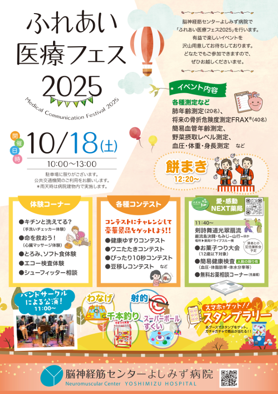 今年も脳神経筋センターよしみず病院にて「ふれあい医療フェス2025」が開催されます!